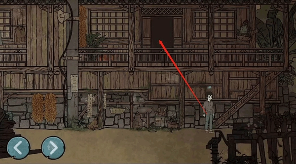 3、继续往右走来到住所和屋内的人交谈后从右边的竹梯上楼;