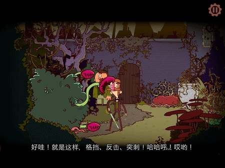 再次来到秘密花园,用刀砍断食人花,通道开启成功进入里面。