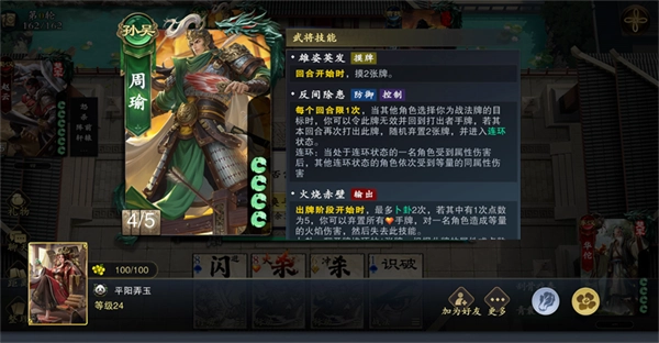 要维持自身血量上限,才能持有更多的手牌。除了用来攻击敌方的“杀”,桃和闪可适当留手,关键时刻可以保护自己。