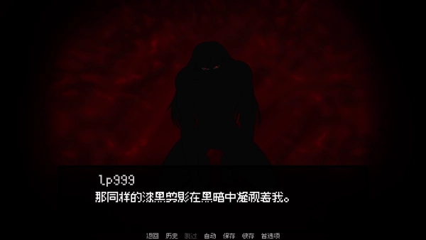 3、初始场景呈现暗红氛围,伴随黑影注视的设定,快速营造悬疑基调。