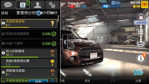 7、另外,游戏内完成任务中心的任务还可额外领取赛车配件和金币。