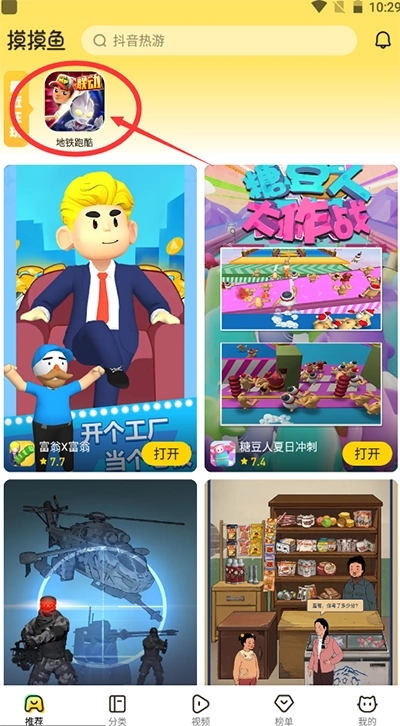 1、先下载并安装摸摸鱼的最新版本,打开应用进入主界面后,选择自己想玩的游戏。