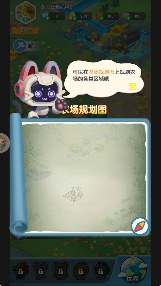 3、在地图上滑动规划各类区域,之后按照任务提示进行游玩