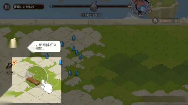 2. 接触荧幕,使用摇杆来控制英雄移动。