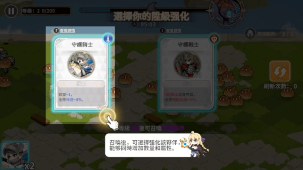 3. 点击召唤可以增加一速,可以远距离冲锋的伙伴守护骑士。