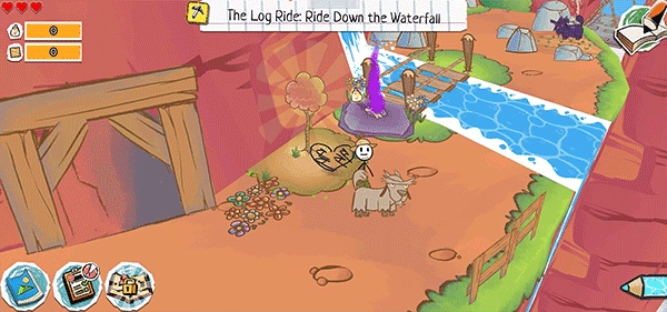 书页路线的最终岛屿悬浮在墨水湖上。抵达前需在沿途桥墩绘制吸水海绵结构,让湖面墨色浓度降低至半透明,才能看清水下通往岛屿的隐形阶梯。