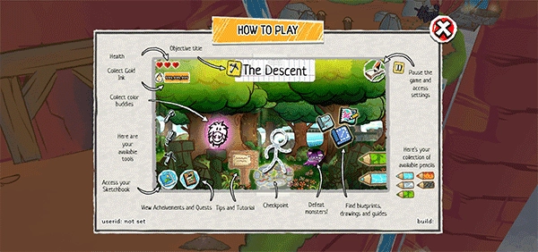 安装结束后启动游戏,首页悬浮着半透明的墨迹公告,轻轻点击Accept,它便像揭开封印一样消散。点击Start Game,画面立刻变成一张摊开的素描纸,纸角微微翘起,静候第一笔的落下。