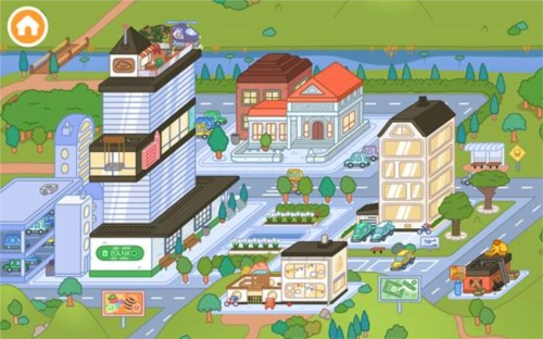 1.进入游戏后,首先映入眼帘的是自己所在的街道。街道上最高的建筑是商业楼宇,内部设有众多办公室;远处矗立着学校,近处则是自己的家;街道右侧还分布着一栋居民楼和一家修理厂等设施。
