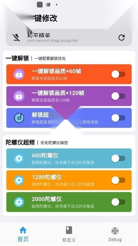 3、为和平精英提供的专用图像质量工具,集成了帧率解锁,图像质量调整,灵敏度优化和战术辅助。