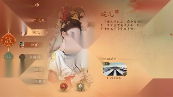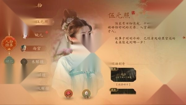 伍家有女初长成,十四岁的你,受到你的姨母杨舒妃的引荐,入宫成为当今陛下的五品才人。故事才刚刚开始,已经身处暗黑宫廷的你,未来能走到哪一步?