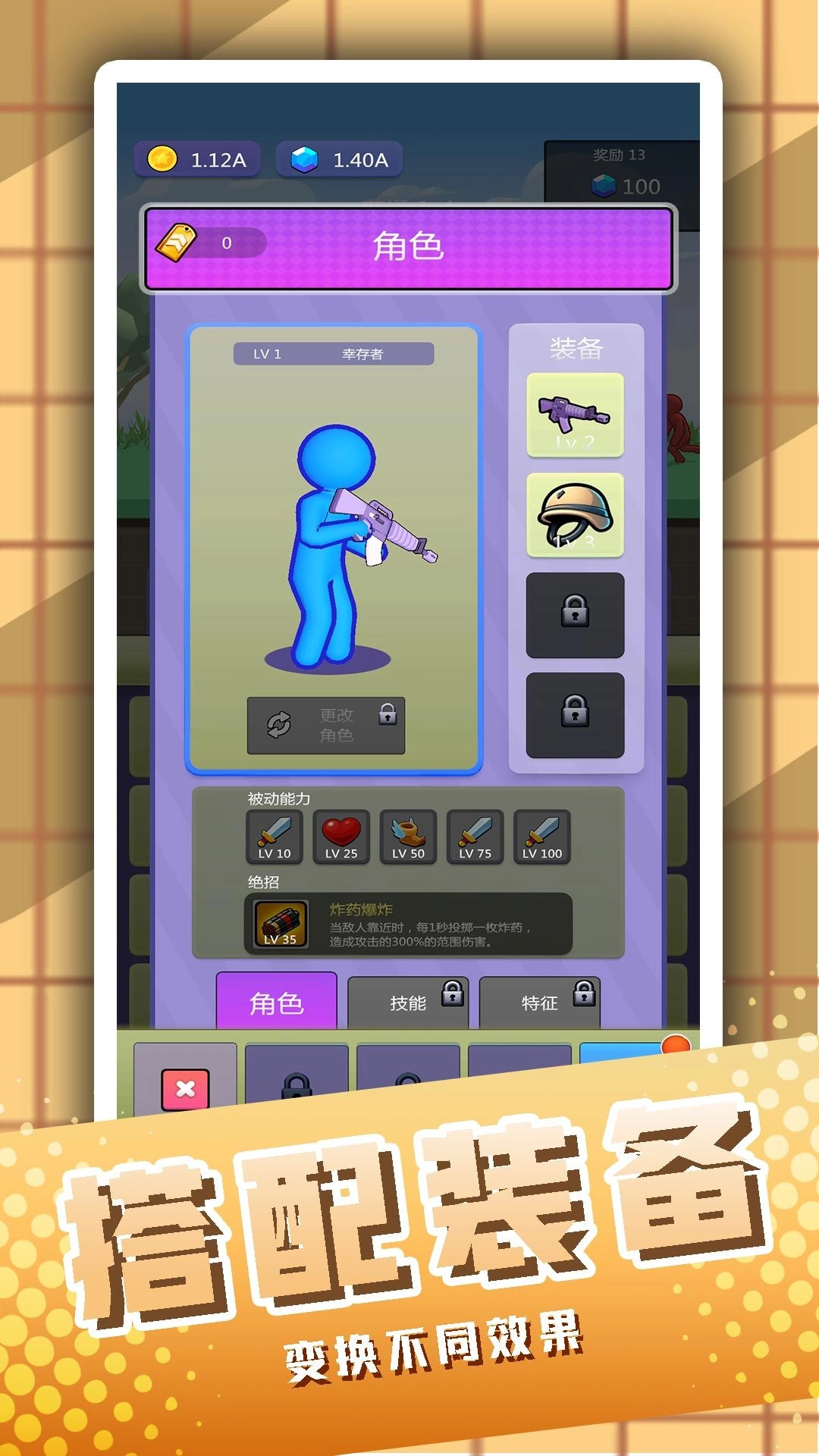 2、火柴人的皮肤有很多,凭借你的实力去解锁,自由的搭配武器和服装。