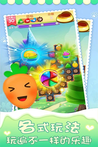 3、多种不同颜色的糖果更能让玩家拥有更为全新的挑战,游戏内的玩法也是极多,还有各种动听的音乐伴随闯关。