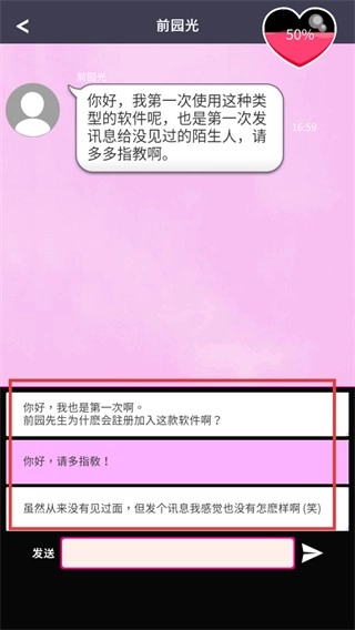 3、从多个回复选项中挑选符合角色设定的内容,可增强与【前园光】的互动趣味性。