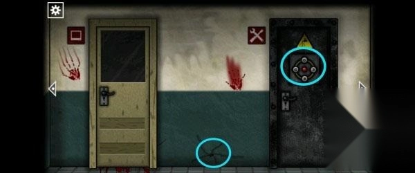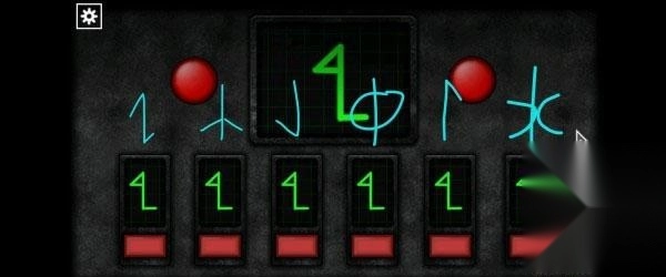21、观察白色纸条上的符号,然后点击下面的按钮使最终的符号出现,完成后打开铁门。
