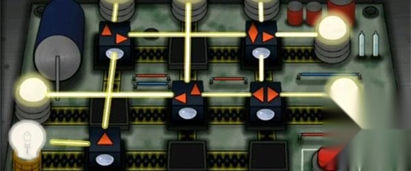 11、将灯泡装在面板上,再将方块移到正确的位置上,接着点击红色按钮使所有灯全部亮起。