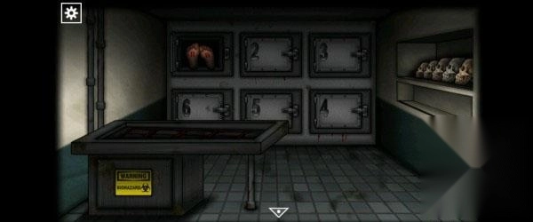 15、打开停尸柜,观察脚上的红色竖线,出现几条杠就打开几号柜子,正确顺序是「1423142」,完成后拿走脚上的「钥匙」。