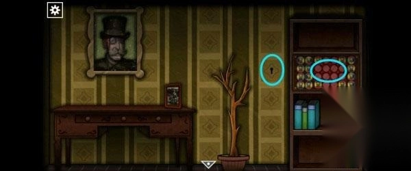 25、进入右侧房间,使用钥匙3打开房门。点击右边的书柜,完成机关后获得「钥匙4」和「绿色弹珠」。最后可以用钥匙4打开画像,但是没啥用。