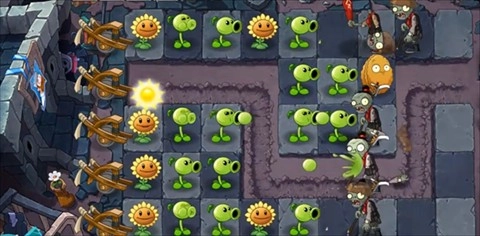 7、种两棵豌豆射手,这样才能够更好的应对僵尸大军,后续玩法相差无几,还请玩家自行体验。