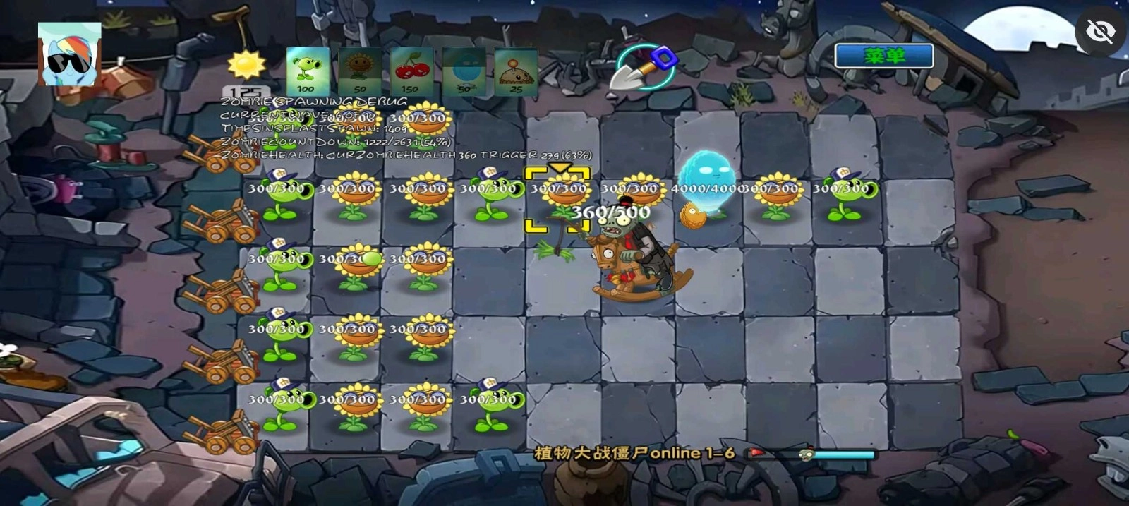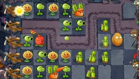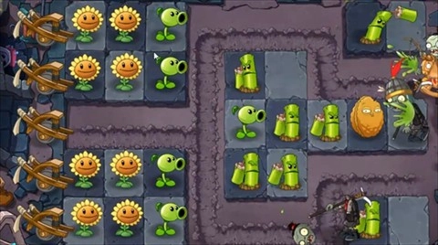 3、秦始皇陵1-3关卡:这一关与前两关玩法相同,同样是利用尽有的几个植物进行防御,左侧向日葵和豌豆射手,右侧为竹子和坚果,必要时也可以放土豆。