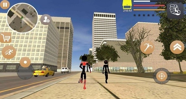 5、玩家能够操控主角进行奔跑、跳跃,也可以释放蛛网来实现快速移动,尽情感受成为蜘蛛侠的畅快体验;