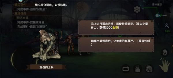 15、在行进途中遇到重伤的士兵时,系统会为你提供两个选项,这两个选择各有优劣,最终的抉择取决于你。