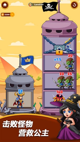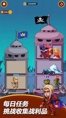《刀塔营救》是一款融合休闲益智与策略角色扮演元素的游戏,玩家需巧妙操控英雄,战胜恶龙、收集战利品、消灭怪物,最终完成拯救公主的使命。游戏采用放置类策略解谜玩法,玩家需要通过思考来优化英雄与资源的使用方式,以高效达成游戏目标。