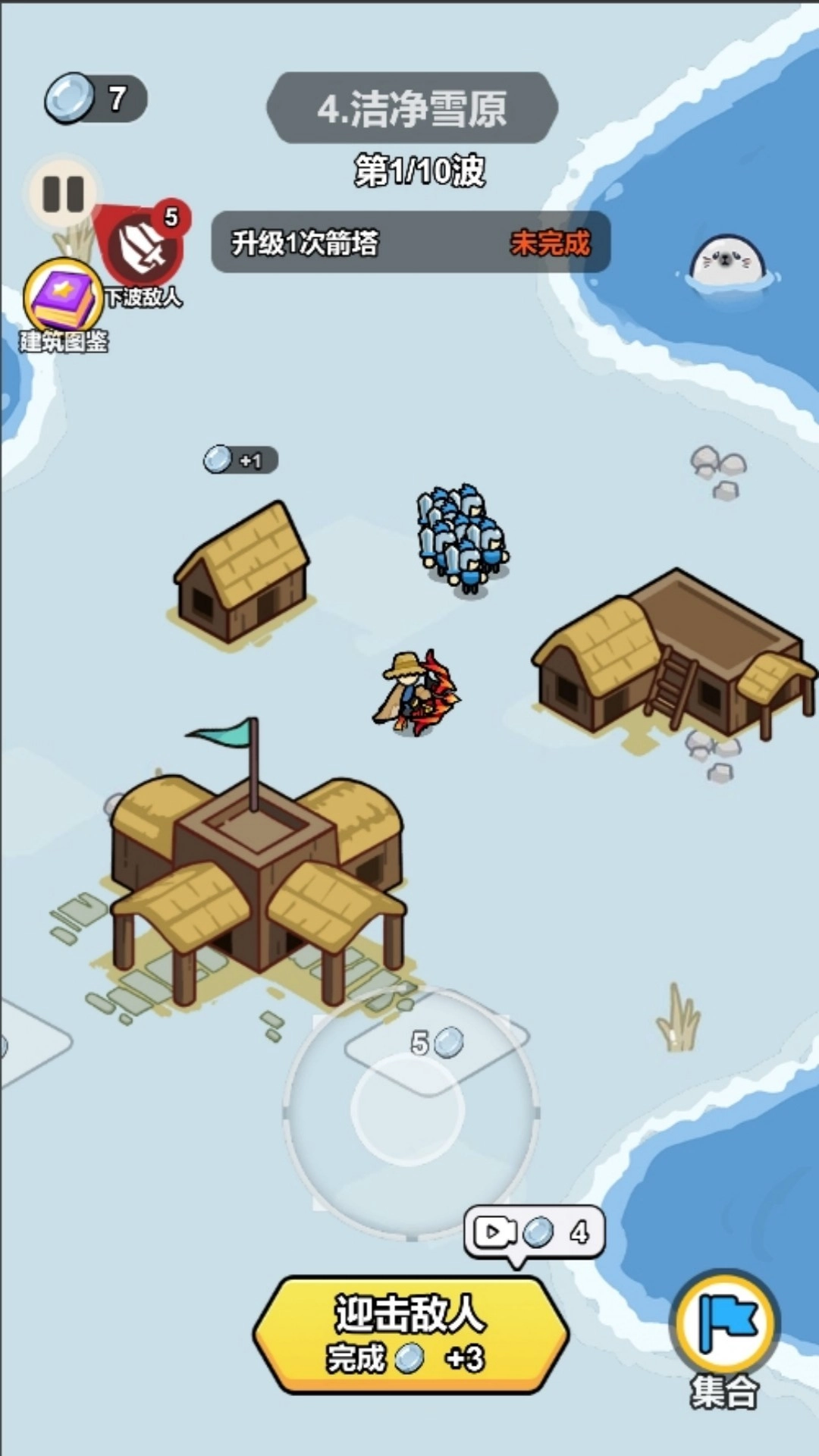 3、每波怪物进攻前,可调整策略,比如在怪物路径建更多箭塔,或集结士兵到关键位置,迎接新一轮挑战。