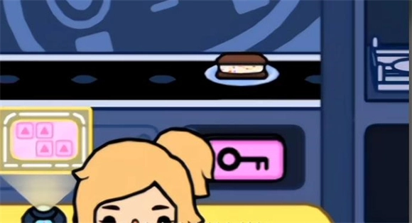 来到奶茶店,将两个盘子扔到垃圾桶,然后记住传送带上出现的密码,在旁边输入密码,点击出现粉色钥匙,就可以前往一个新区域。