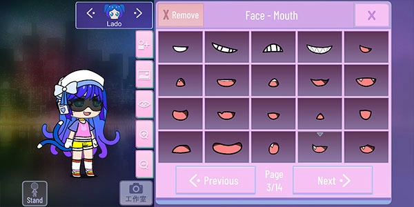 2、像嘴巴、动作、脸型、发色以及装饰衣服等细节这处都是可以进行变化操作的