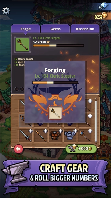 1、放置类玩法操作,像素冒险过程带给你沉浸式的体验;