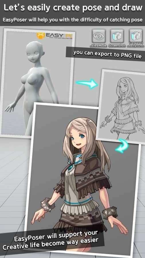 2.漫画风格模特-以前的姿势应用程序有许多逼真的8头男女比例,使其不适合动画,webtoon或插图。EasyPose采用各种体型的模特准备。