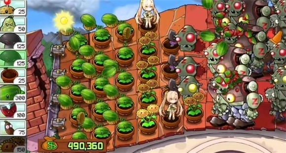 2、一次性植物最好提前种因为CD太长,如果遇到普通僵尸和路障刷一起的情况可以对路障种西瓜,用溅射伤害弄死普僵。然后慢慢在后排种上一排西瓜,如果怪物太多就用毁灭菇来应对。在第一波到来时最好有一排西瓜和800阳光。