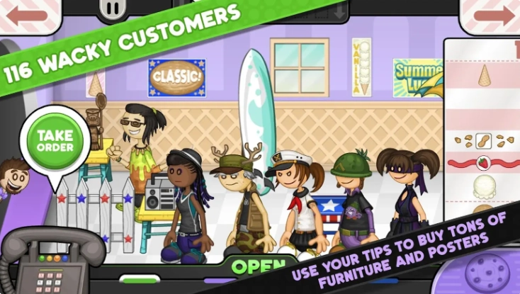 老爹冰淇淋店是一款模拟经营玩法的,这款延续经典老爹系列的设定玩法,