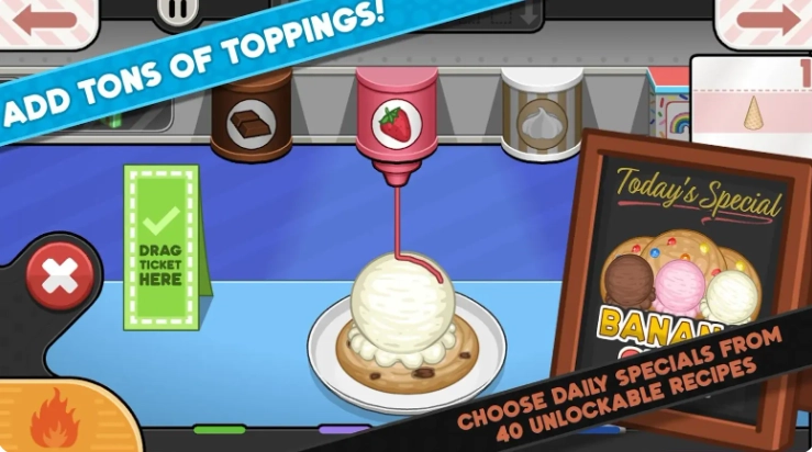 在这里玩家将经营一家冰淇淋,需要根据客人不同的要求,按照菜谱之中各种各样的冰淇淋,