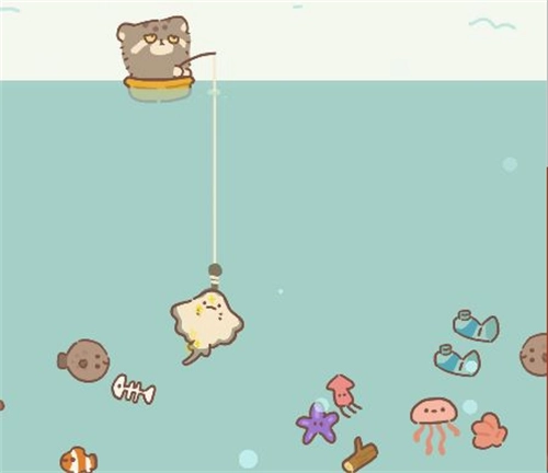 鱼塘18样物品:鱼骨、易拉罐、塑料瓶属于垃圾,树枝、小丑鱼、比目鱼、水母、鱿鱼、螃蟹、粉色贝壳、海星、红河豚、鲨鱼容易钓,海马、墨鱼、海胆、金鱼每天随机出现一种或者不出现,蝴蝶鱼出现时池塘水面有布灵布灵的光,像福袋一样闪闪发光。