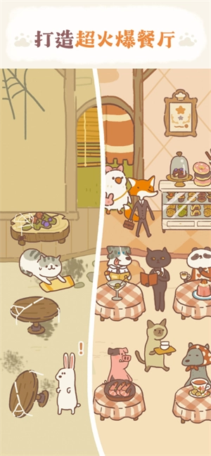 动物餐厅是一款满溢温馨与趣味的模拟经营游戏,玩家将化身动物餐厅的店主,通过规划餐厅布局、烹制可口菜肴、招募萌趣动物员工等途径,吸引更多顾客光临。在这里,玩家能体验从无到有经营餐厅的过程,持续升级设施、解锁新菜谱与场景,还能和各类有趣的动物顾客互动,一同打造出一个活力满满、充满欢声笑语的餐厅天地。