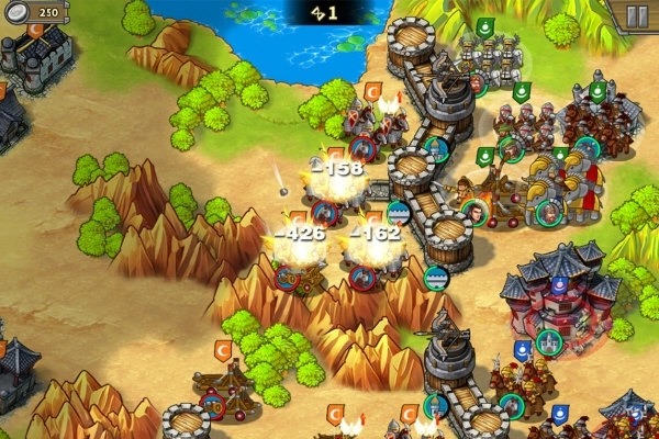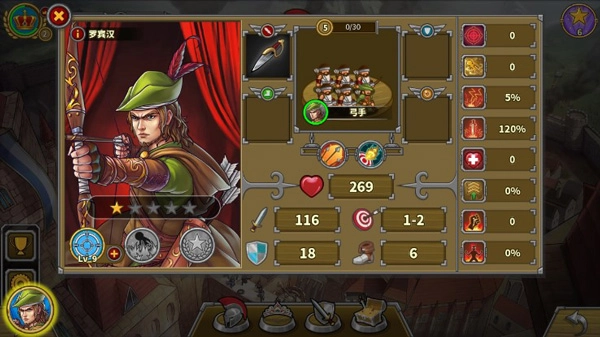 除了技能就是兵种,总共四个。步兵克制弓箭,弓箭克制骑兵,骑兵克制步兵,攻城武器克制建筑,这些克制关系都在兵种技能里有体现。另外,骑兵的技能延续了坦克的传统,击杀目标后能连续攻击;弓箭和攻城武器有一定概率让敌人不反击,不过感觉没什么用,毕竟我的大炮本来就是远程轰击;步兵则是无视地形,这特色实在没什么用。