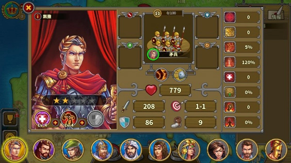 6、集中练几个将领,不花钱征服只能上四个,过图一般在5个左右,送的将领里除了斯巴达和艳后其他几个加上李世民基本就够数了,一般不需要再买。