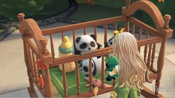 奇珍家具“熊猫摇篮”的造型是一个木质摇篮,里面有三只憨态可掬的大熊猫,它们的神态和动作各不相同:一只正爬上围栏,好像要上演一场“越狱”的戏码;另一只安静地坐在摇篮里,欣赏着外面的风景;第三只则完全趴卧着,惬意地享受着慵懒的回笼觉。玩家还能和摇篮互动,比如晃动摇篮来逗弄大熊猫,或者与它们玩耍,确保你一回到归宿,就能快速转换心情,变得快乐满满!