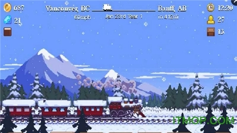 首先映入眼帘的是一列仅有一节车厢的火车缓缓驶出,点击地图便能看到它的目的地。不过火车的行驶路线无法由玩家选择,且全程采用横版视角呈现。简洁却不失精致的像素画风,生动展现了美国本土不同地区的风貌,以及四季更迭的美景,像飘雪、晴空万里等场景都刻画得十分细致,足见开发商的用心之处。