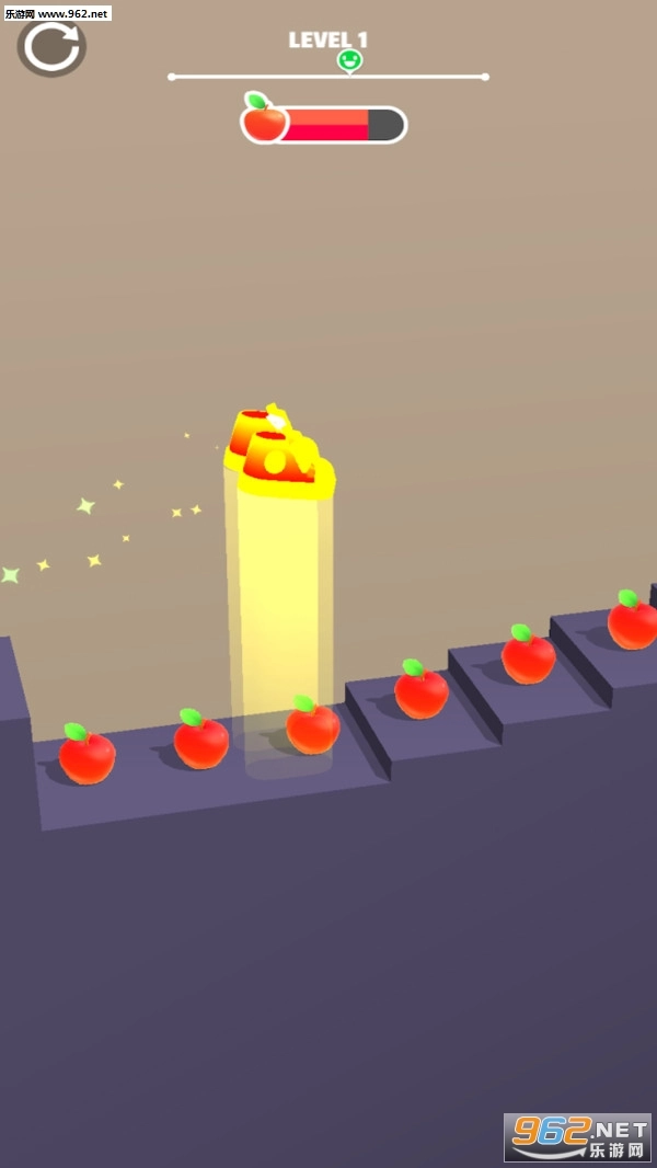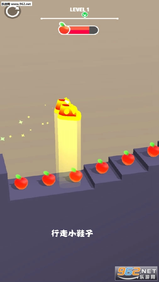 ,越过一个又一个阶梯;2、在持续移动探索的过程中还能收集苹果,不要遗漏任何一个苹果;