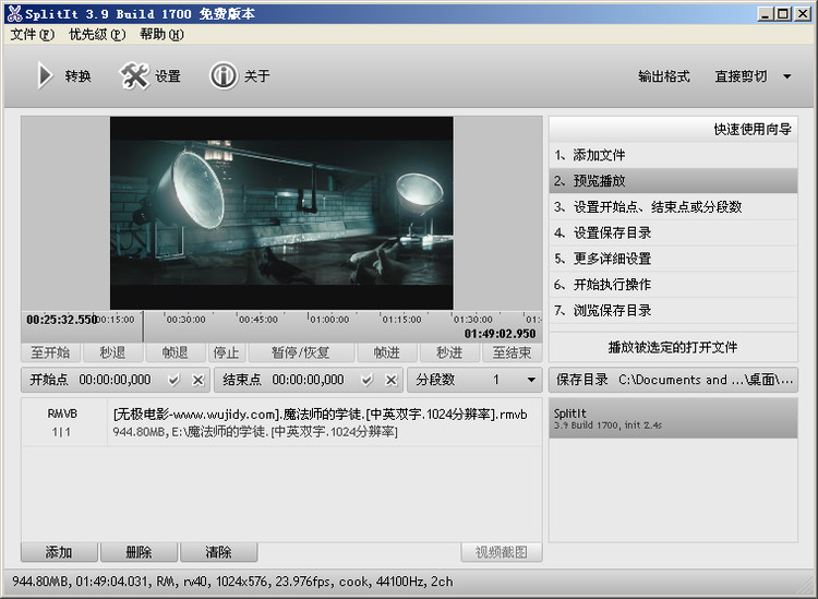 4、内置播放器用于切割位置定位