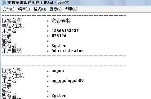 自动获取宽带账号密码,自动获取本机宽带帐号密码并自动保存到D盘。完美解决宽带密码忘记的问题!
