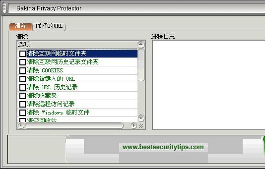Sakina Privacy Protector 能删除 cookies,清理 index.dat 文件,清理高速缓冲存储器,抹掉最近的文件历史,删除上网痕迹,移除暂时的文件,释放磁盘机空间, 倒空文件和临时文件夹, 只是保护你的隐私而且改善你系统的绩效。