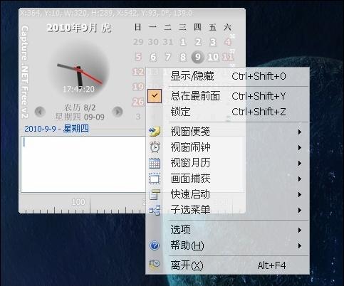 集一般小工具于一身, 让您PC上的工作更加简快与清爽. Support Post-It 桌面便利贴, Calendar 窗口月历, ScreenRuler 窗口尺, CaptureScreen 画面撷取, CaptureColor 色彩撷取, Converter 转换专家, Alarm Clock 窗口小