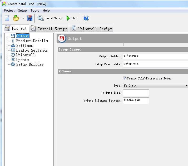 所以,你可以指定输出目录和安装可执行文件名,创建一个自解压的安装和设置的类型,容量大小和文件名模式。