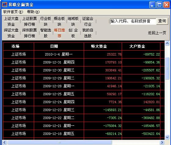 易联全赢资金软件主要是查看分类四项资金流向,分别是:超大户资金、大户资金、中户资金、小户资金流向。