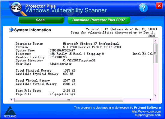 Windows Vulnerability Scanner是一个系统漏洞维护工具。英文版本,使用极其简单。更重要的是该工具还提供了Protector Plus for Windows(系统保护附加工具)的具体下载地址