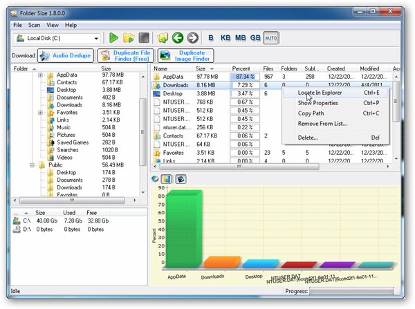 在不同的图表-柱状图,饼图显示文件和文件夹的大小等