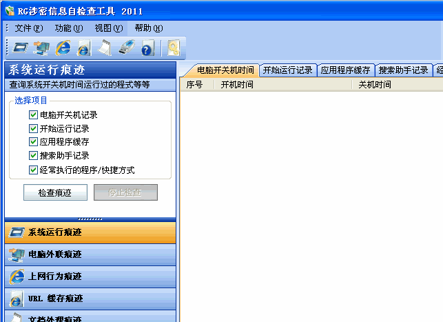 系统运行痕迹:该功能主要查看电脑使用和程序运行情况,可以准备获取最近的电脑开关机时间、运行过的程序。